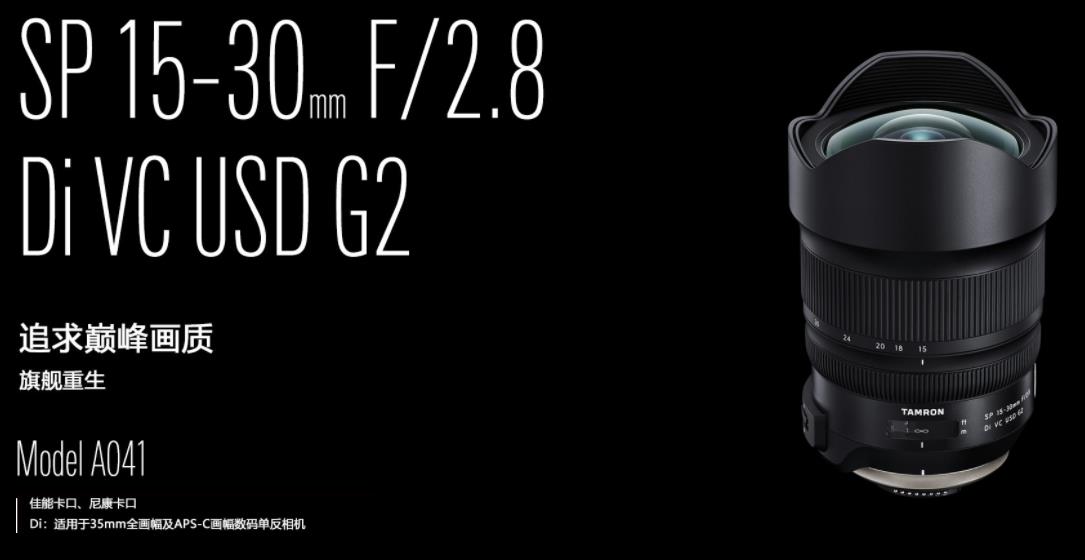 大光圈超广角变焦镜头SP 15-30mm F/2.8 Di VC USD G2(型号A041)拥有高画质,可将眼前景色一网打尽。特殊玻璃与非球面镜片的优化配置,大幅抑制广角端较易产生的畸变及放大色差。为该镜头特别开发的全新AX(Anti-reflection eXpand)抗反射镀膜,配合eBAND及BBAR镀膜,实现了从中心到边缘的清晰画面表现。另外,镜头配备有高精度的先进自动对焦技术与强劲的VC光学防抖。佳能EF卡口标配有后置滤片安装装置,可方便地进行滤镜创作。耐磨损性大幅提升的高耐久抗污涂层加上简易防滴构造,为各种拍摄环境提供更多防护支持。