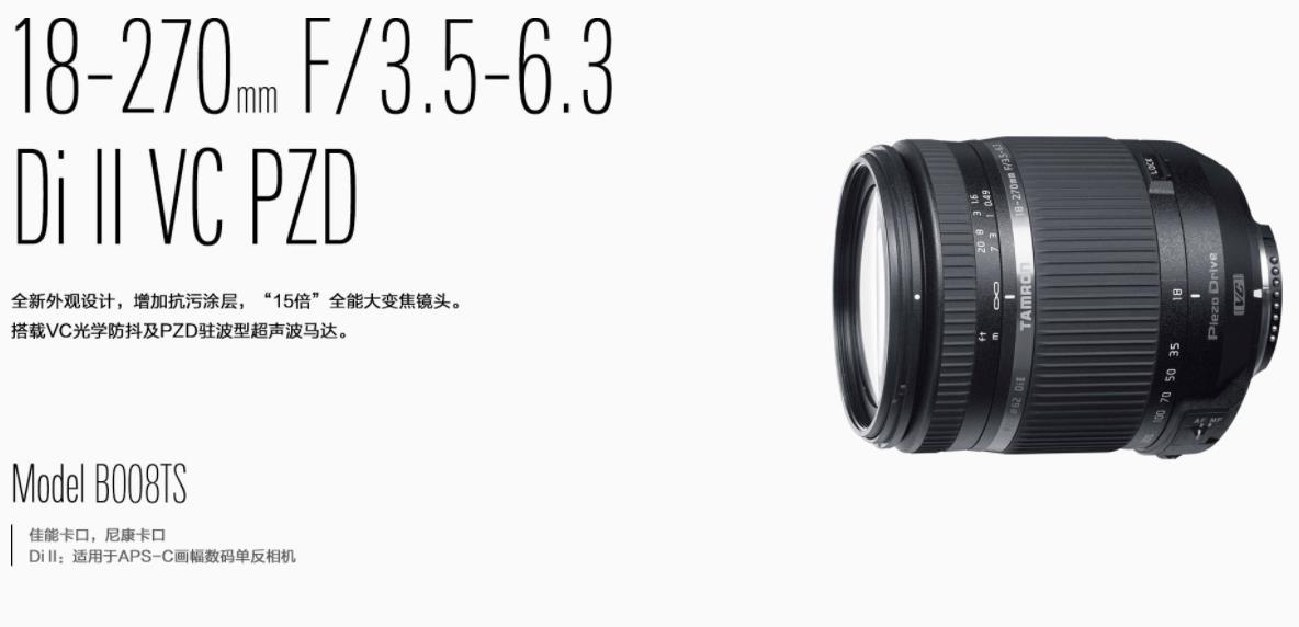 搭载PZD驻波型超声波马达及VC光学防抖,实现小型轻量化的同时,提升镜头性能15倍超大变焦覆盖了从广角到长焦的焦距范围,滤镜口径Φ62mm及450g的轻巧设计,能与小型数码单反相机很好的匹配。驻波型超声波马达PZD,令对焦更顺畅。 对于望远端或低光照环境下的拍摄,由于搭载了VC光学防抖,可方便地进行手持摄影。这支适用于APS-C数码单反相机的镜头能呈现清晰锐利的高画质,充分发挥拍摄者的表现力。